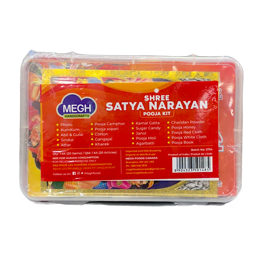 MeghThe Megh Shree Satya Narayan Pooja Kit is a specially curated collection designed to facilitate the sacred Satya Narayan Pooja, a Hindu religious c...