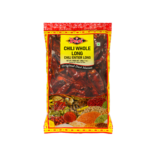 Desi"Desi Chilli Whole Long" refers to a variety of whole dried chili peppers renowned for their fiery heat and distinct flavor profile. These long chi...