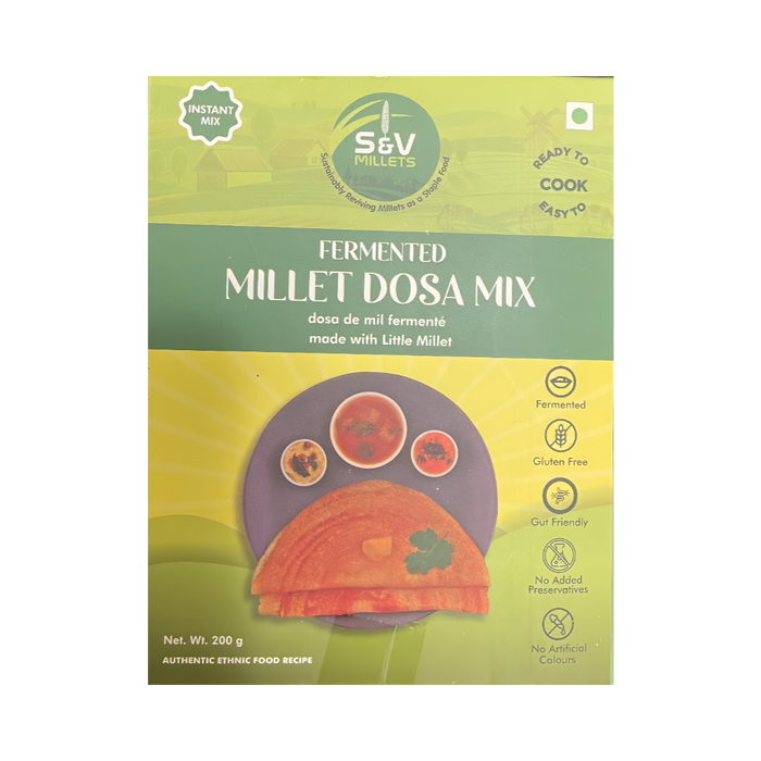 The millets used in this mix are fermented, which not only enhances their flavor but also makes them easier to digest and boosts their nutritional profile. Fermentation is an age-old process in Indian cuisine, known to improve gut health and increase the bioavailability of essential nutrients like iron, calcium, and vitamins. This makes S&V Fermented Millet Dosa Mix perfect for those who want to enjoy a delicious meal while caring for their health.